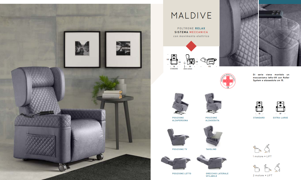 Di serie viene montato un meccanismo letto-lift con Roller System e alzaseduta cm 15.